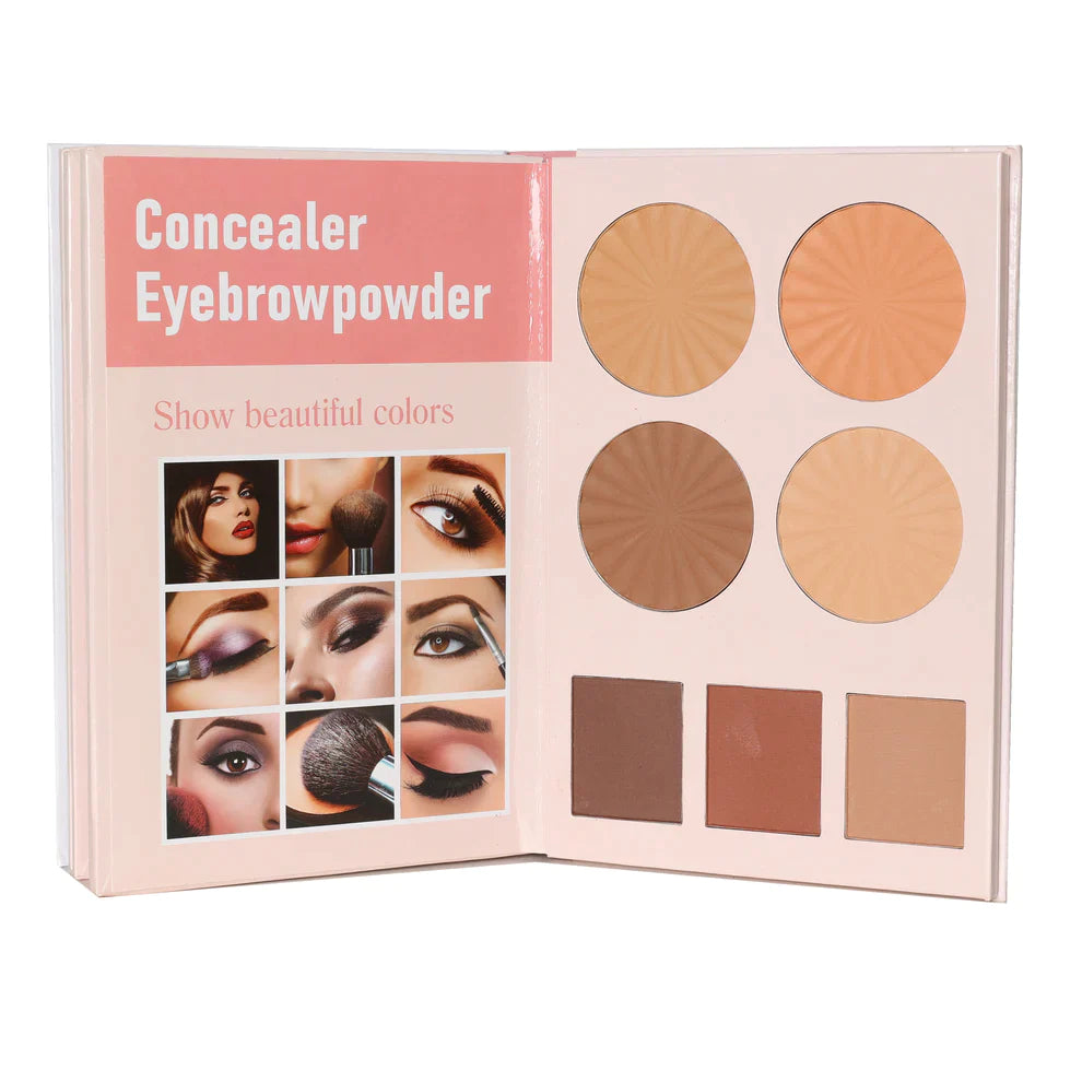 A notebook-shaped palette that contains eyeshadow, blush, and highlighter in attractive and eye-catching colors to give you the most beautiful look.