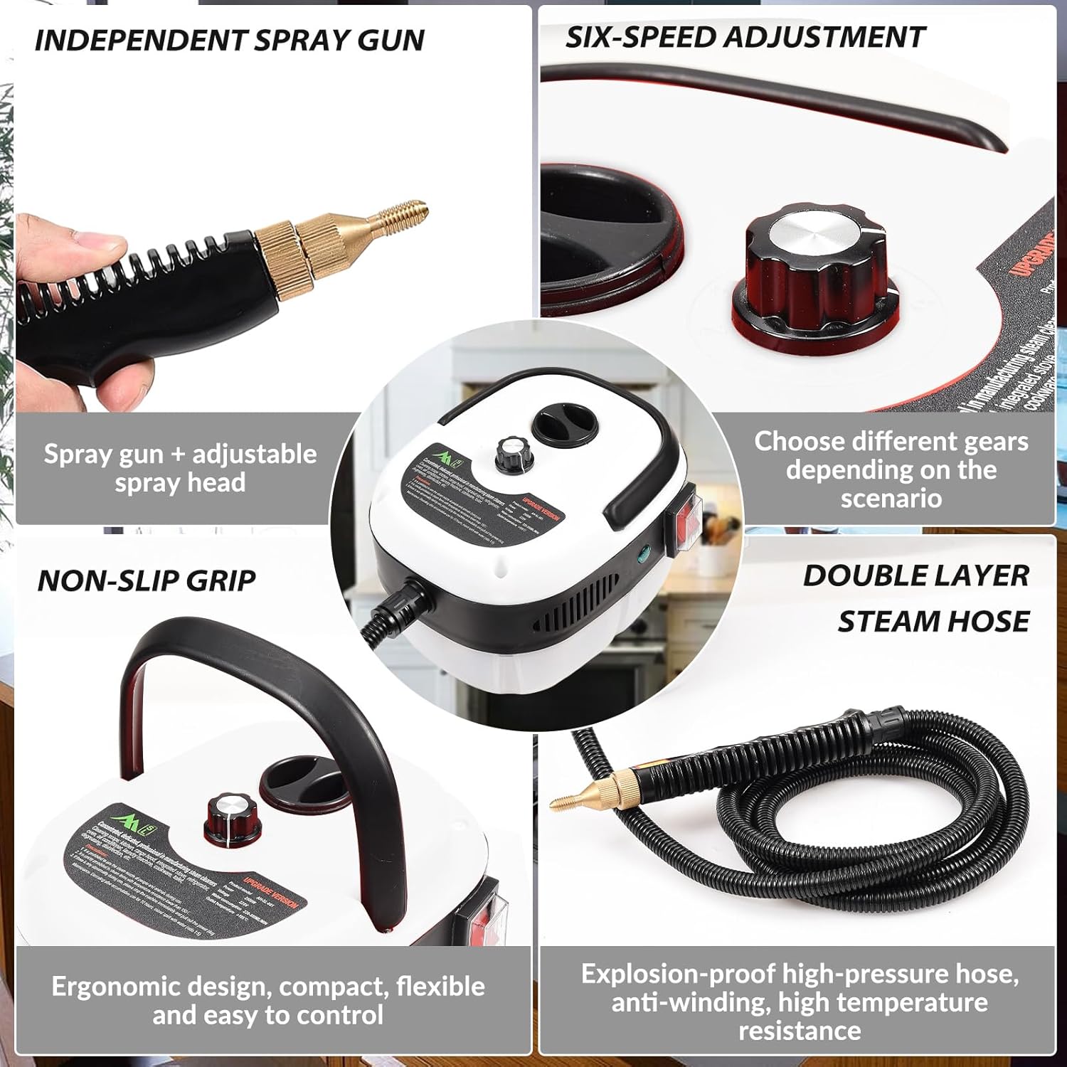 - ✔ Multi Purpose: Comes with 3 different brush heads, this steamer cleaner has a dial that helps control the amount of steam and can be used in car, walls, kitchen, bathroom, furniture, etc